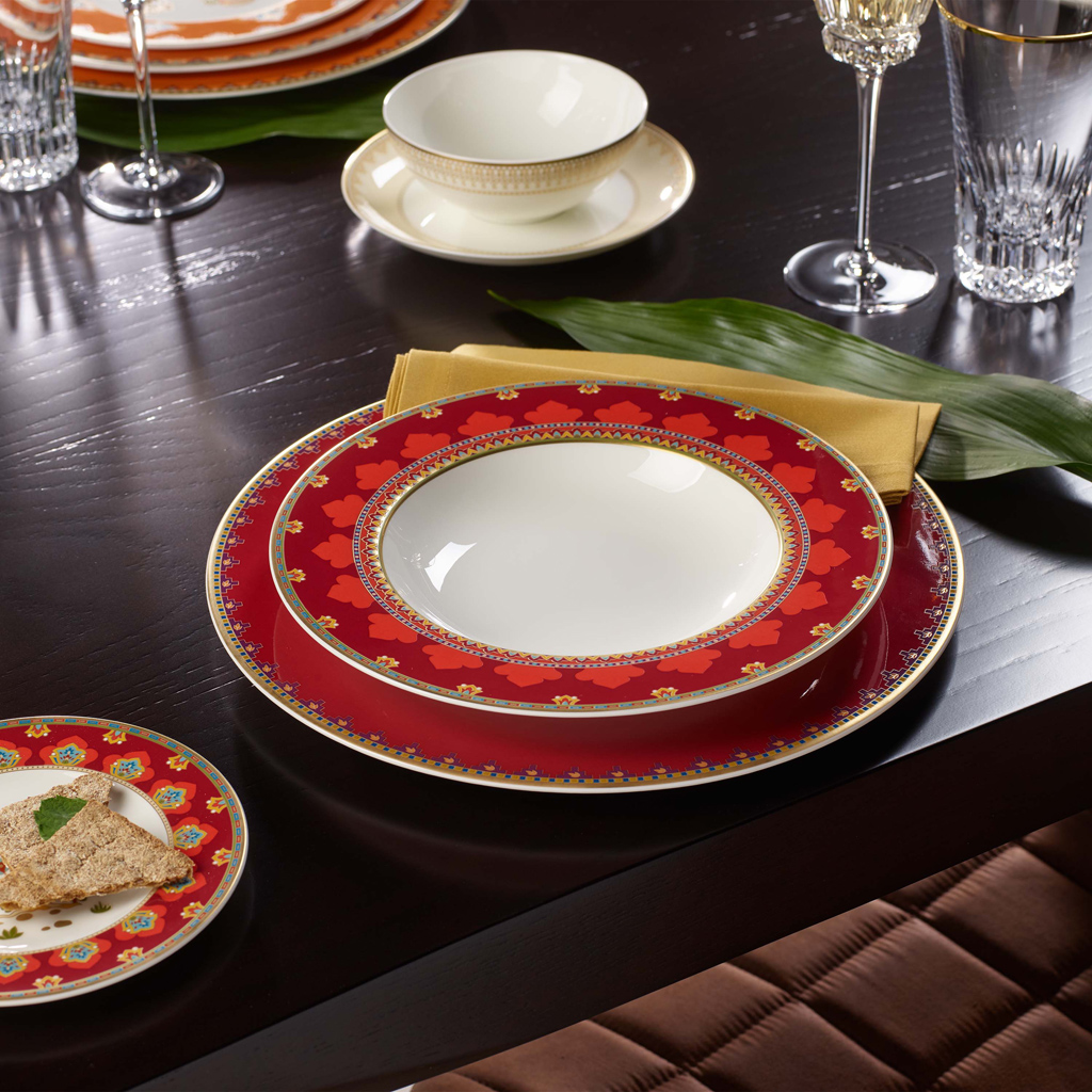 קולקציית Samarkand מבית Villeroy & Boch משלבת מוטיבים של סוסים, גמלים ופילים עם צבעים מבריקים כמו תרשיש, אדום רובי וכתום מנדרינה עדין ליצירת מכלול בטוב טעם ומסתורי. הסגנון המזרחי של הקולקציה יסחוף אותך למסע לאורך דרך המשי דרך סין, מרכז אסיה, חווארזם ופרס. Villeroy & Boch היא שם נרדף לעיצוב פורצלן אלגנטי מאז 1748.