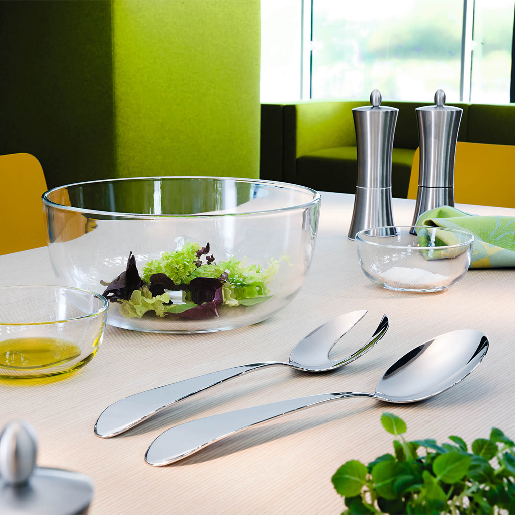 הסט הגדול המורכב מכפית סלט ומזלג סלט מאפשר להגיש סלט בקלות, לא משנה אם ירוק או מלוח.